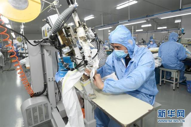 3月3日,在浙江泰普森实业集团有限公司,净化生产车间工人在赶制医用一次性防护服。 新冠肺炎疫情发生以来,位于浙江省德清县高新区的户外用品生产企业浙江泰普森实业集团有限公司紧急规划生产车间,采装关键设备,迅速调拨生产能手,全企动员积极转产,组建完成约5000平方米医用一次性防护服净化生产车间。目前,该企业生产医用一次性防护服、隔离衣合计7条产线,日产量达1.2万件以上。 新华社记者 黄宗治 摄